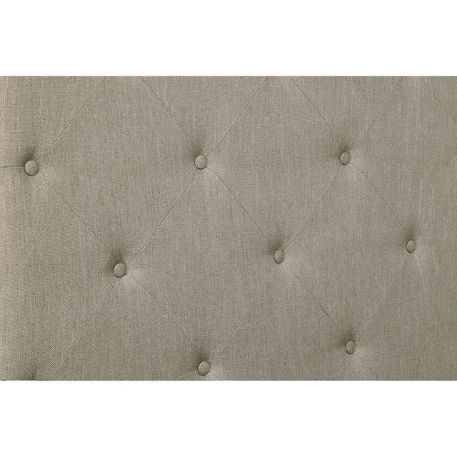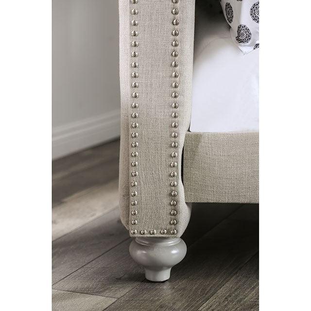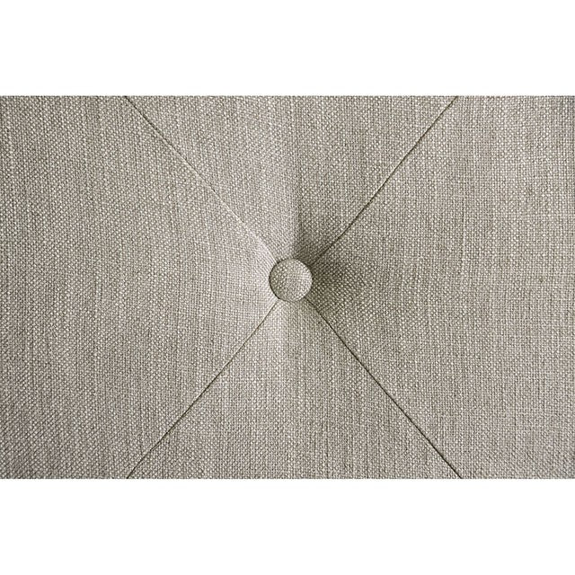 Here's a twin over twin bunk bed that's not only comfortable, but also stylish! The light gray linen-like fabric can be found along the entire frame while rolled ends and nail heads create a sense of grace and charm. The kids will love playing royalty in this padded button-tufted piece!